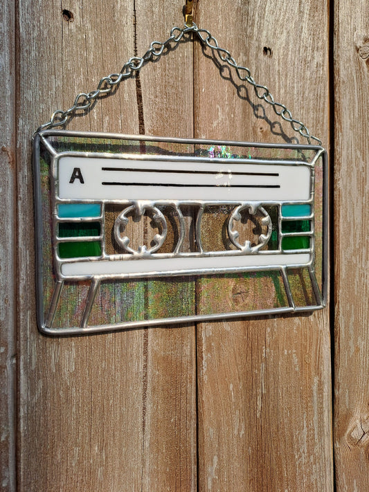 Handcrafted Real Stained Glass Cassette Tape Suncatcher