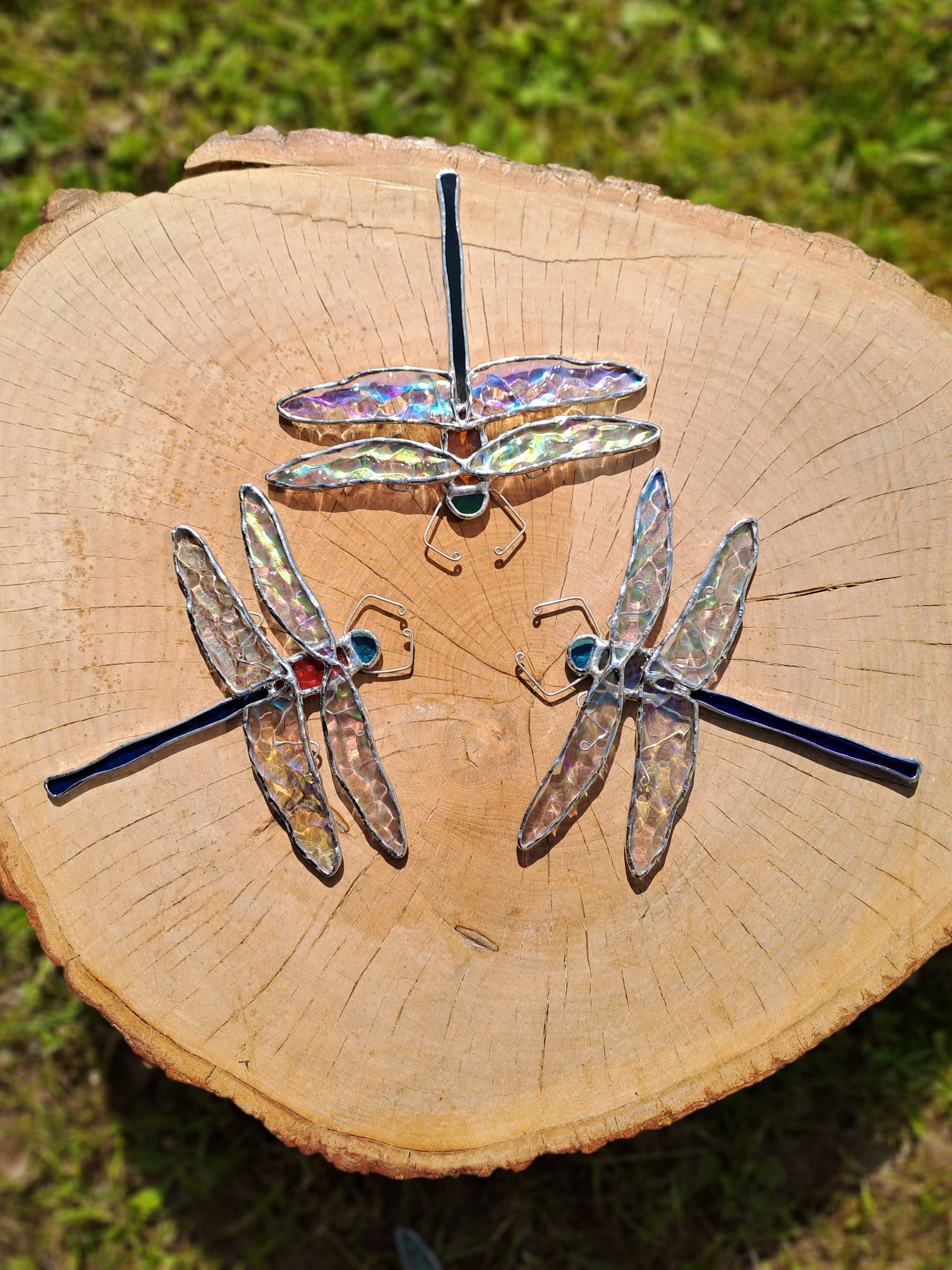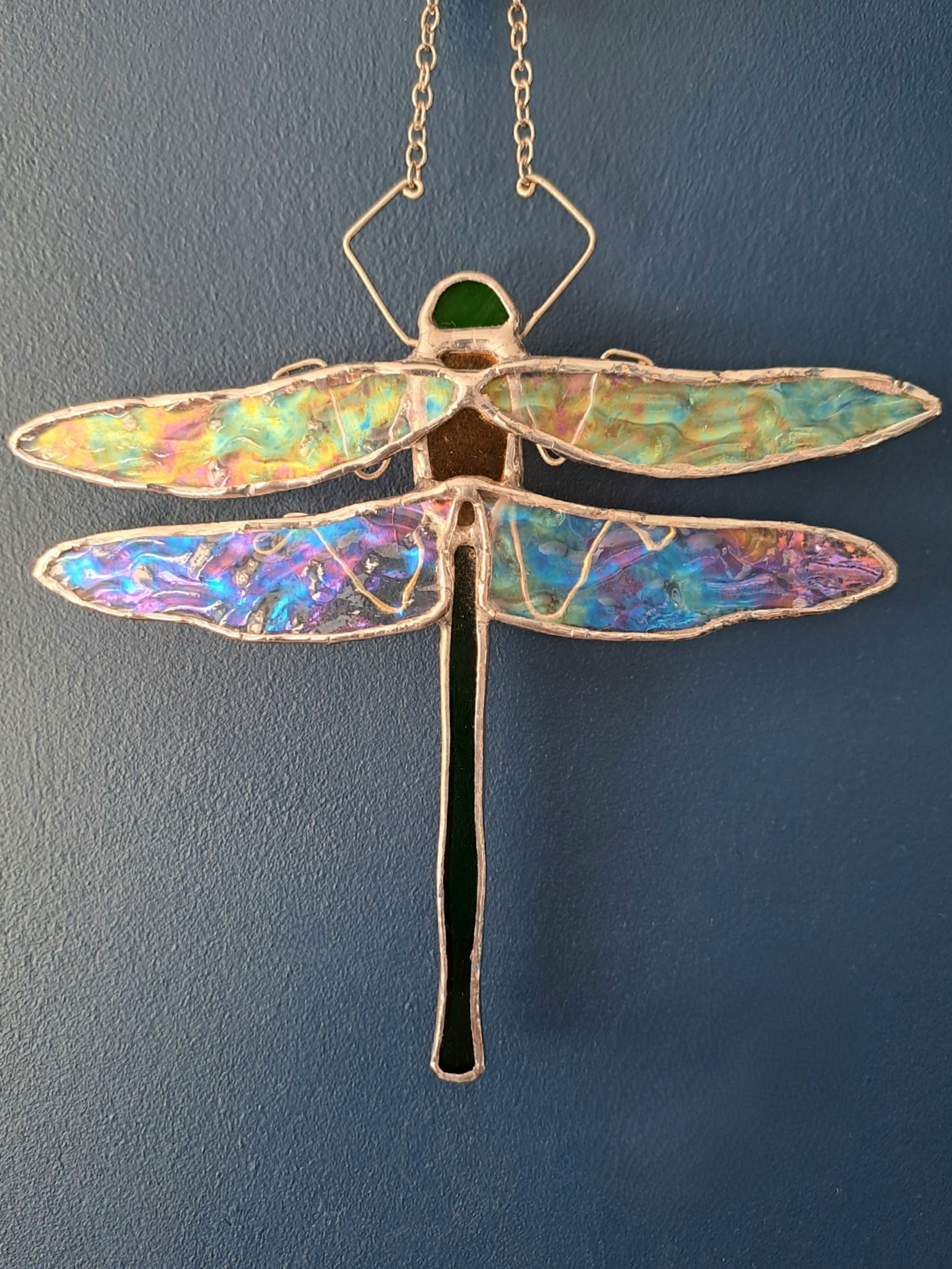 Dragonfly Stained Glass Suncatcher, Tiffany Technique, Home/Garden, Hanging, Iridescent Glass, Hand Made